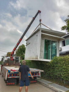 ให้บริการยกตู้คอนเทนเนอร์ 20 ฟุต และ 40 ฟุต สำหรับงานขนส่ง งานก่อสร้าง และงานย้ายบ้านน็อคดาวน์ รวมถึงงานตั้งตู้สำนักงานในไซต์งานก่อสร้างทั่วประเทศ