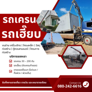 รถเครนรับจ้าง ครบวงจร: ขนย้ายชิ้นงาน ตู้คอนเทนเนอร์ วัสดุก่อสร้าง ยกของ ติดตั้งชิ้นงาน ย้ายเครื่องจักรขึ้นที่สูง หรือ ยกบ้านน็อคดาวน์